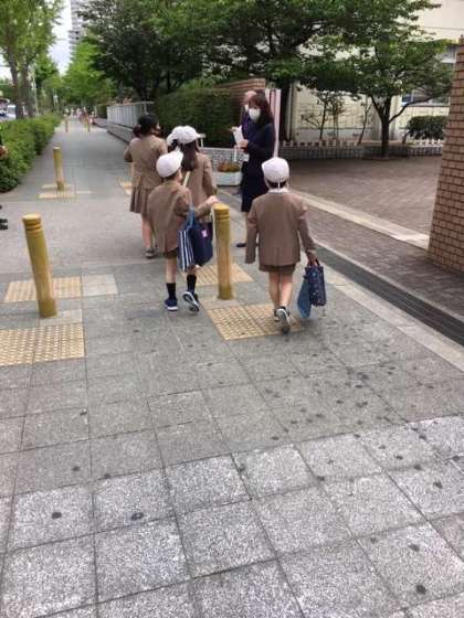 朝、体温を測り忘れた児童は、検温してから教室へ入りました。