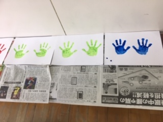 4年生は、学級に掲示する手形を一人一人とっていました。
