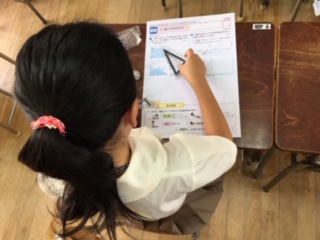 3年1組と4年1組では、同じ時間、算数のテストに挑戦していました。