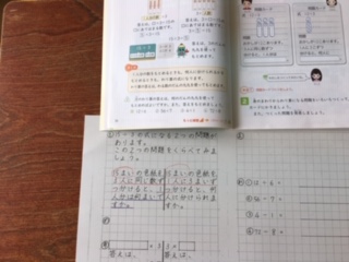 4時間目の算数の授業です。問題文をしっかり読み取りながら、わり算の学習をしています。