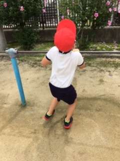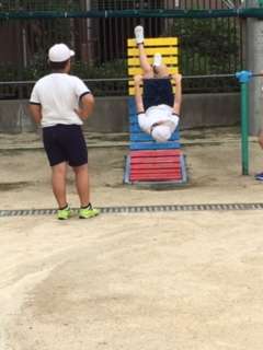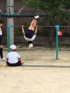 久しぶりに、運動場を使用できる天気だったので、体育を外で行うことができました。鉄棒にチャレンジしている様子です。