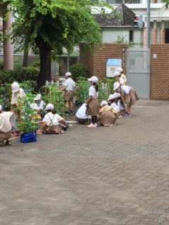昨日、あさがおの観察を行いました。ずいぶん成長してきましたよ。