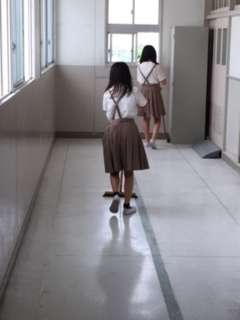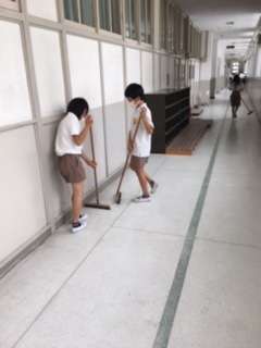 廊下掃除の様子です。隅々まで丁寧に掃除をしていました。