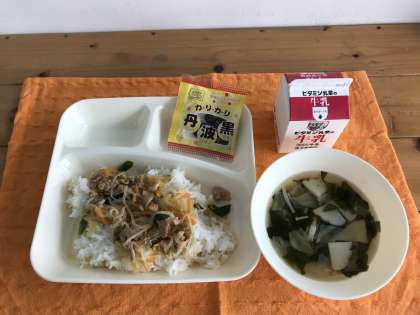 「豚丼」は、喉の通りがよいので食べやすそうでした。どのクラスも残食がとても少なかったです。