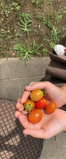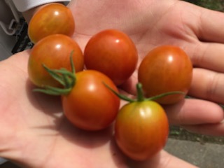 後半には、みんなで学習園に行って、ミニトマトを収穫しました。