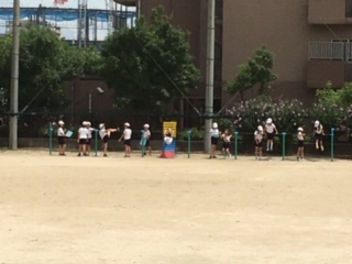 雨がやんでいたので、運動場で鉄棒の練習をしました。学習カードにある技のめあてを確認しながら頑張っています。