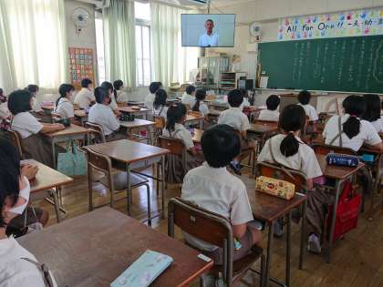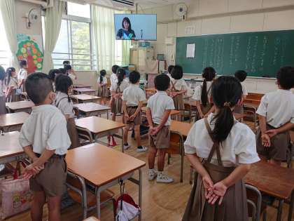 熱中症予防対策のため、始業式は、映像により教室で行いました。