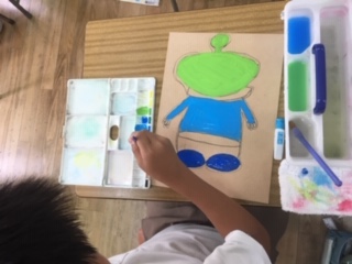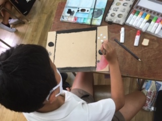 5年3組の児童が、図画工作の時間に「伝言板」を作成していました。熱心に取り組んでいました。