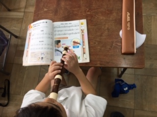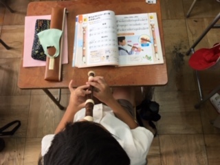 3年2組の音楽の様子です。リコーダーの美しい音色が廊下に響いていました。