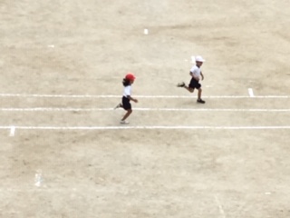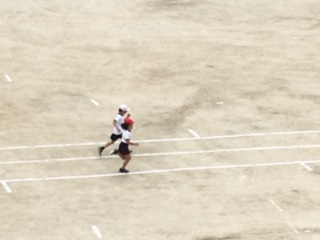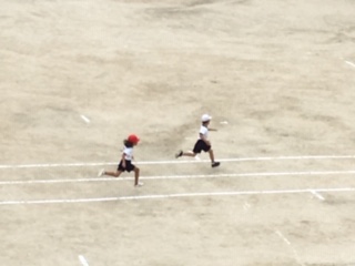 先週金曜日、1年1組、2組の合同体育の様子です。50m走の記録をとりました。