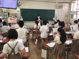 2年1組の学級で、国語科の授業研究がありました。「ビーバーの大工事」の学習で、ビーバーのひみつを読み取りました。児童は、姿勢よく、本を持ち、音読をしています。感心しました。