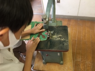 5年生では、図工で、電動糸のこぎりを使って作品を作っています。扱いにも、慣れているようでした。