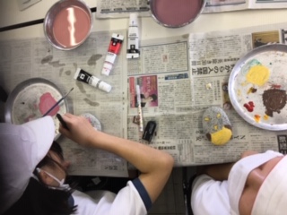 後半にカヌーをするグループは、先に石ころアートにチャレンジしました。