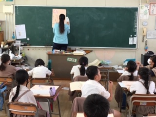 図工の時間に、シャボン玉の絵に取り組んでいます。先生の話をしっかり聞いて進めている姿が印象的です。