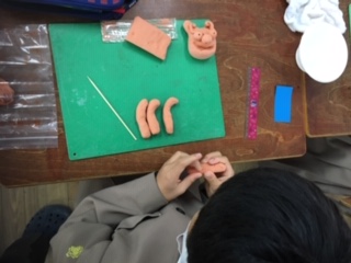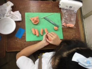 5年生が、シーサーを粘土で作っています。でき上がりが楽しみですね。