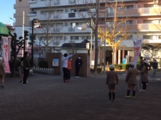 あいさつ週間3日目です。代表委員の人たちが中心になり、あいさつ運動を進めています。少し肌寒い中、頑張っていました。