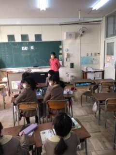 3年生では、12月の算数の授業を少人数にし、3グループに分かれて3つの教室で行っています。児童は、それぞれの教室で頑張っていました。