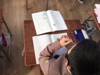 国語の時間に「言葉の音をかぞえよう」という学習をしていました。手拍子をして音を数える場面もありました。