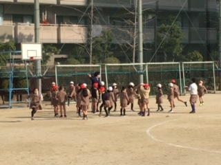 先週に比べると、ずいぶん暖かく感じる今日の休み時間、たくさんの児童が外に出て遊んでいました。運動場が、活気にあふれていましたよ。