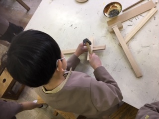 3年生の図工の時間の様子(昨日)です。金づちを使っています。慣れていない児童が多いと思っていましたが、とても上手に「金づち」を扱っていました。