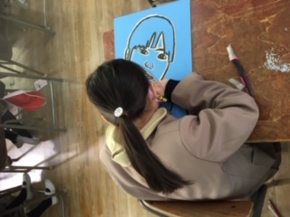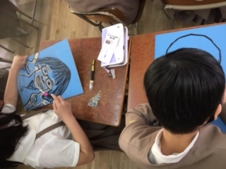 彫刻刀を使って、顔の細かな部分を彫り進めるところでした。彫り方の見本を視聴し、しっかりと確認してから、取り組みました。