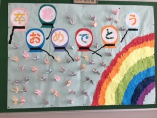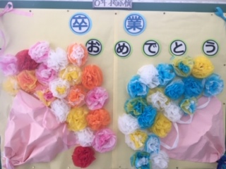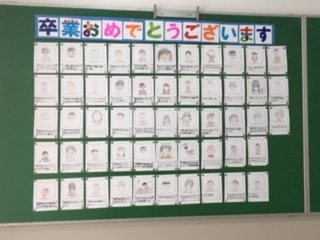 学校の廊下には、6年生の卒業をお祝いする掲示が、いたるところで飾られています。