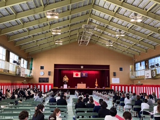 4月7日10時から、入学式が行われました。入学児童67名全員が式に参加することができました。天候にも恵まれ、下校後、記念写真をたくさん撮っていただきました。