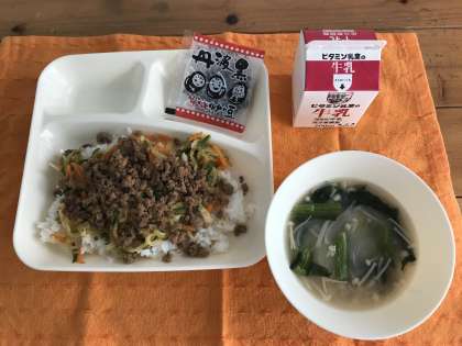 「ビビンバ」は、子どもに人気のある献立です。野菜は、きゅうり、にんじん、切干しだいこんを使いました。「切干しだいこん」の歯ごたえがポリポリとおいしかったです。(栄養教諭)