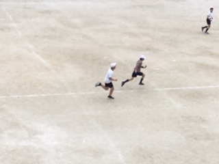 6年2組の体育の時間、50M走の記録をとりました。5年生の時より速くなっているかな。