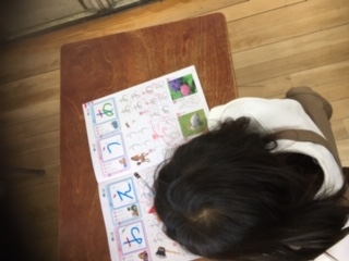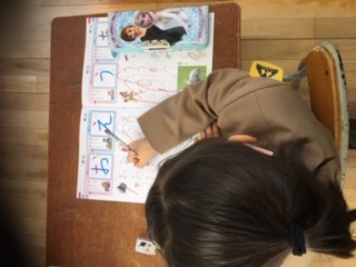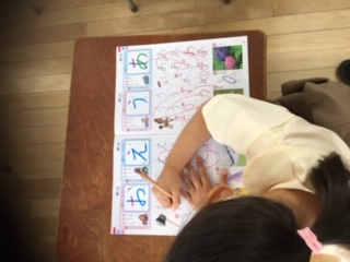 ひらがなの学習です。手本をよく見て、丁寧に字を書く練習です。