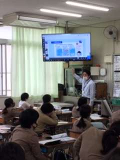 理科の授業です。児童は、石灰を使った実験の方法を確かめていました。