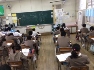 5年生は、「すくすくウォッチ」に取り組んでいます。1時間目は国語と算数、2時間目は理科、3時間目は、わくわく問題(教科横断型問題)です。5年生も6年生も熱心に取り組んでいます。