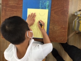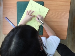 安全に、けがのないように「カッター」の使い方を練習していました。児童は、慎重に作業を進めていました。