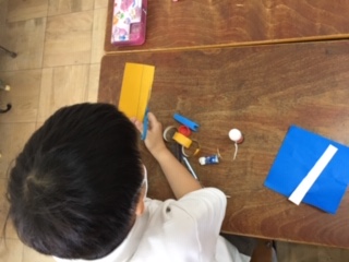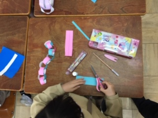 掲示物の飾りを作っていました。