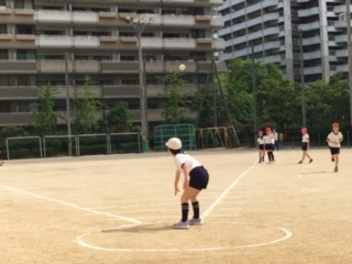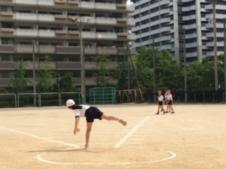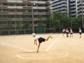 体力テスト「ソフトボール投げ」に取り組んでいる様子です。