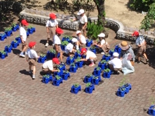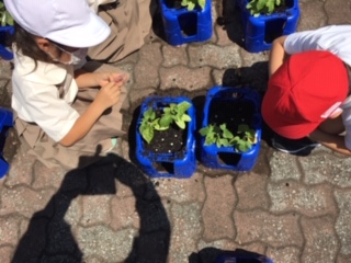 あさがおの「まびき」を行いました。4,5本あった苗のうち、2本の苗を残すという方法です。あさがおの成長には、欠かせない作業の一つです。