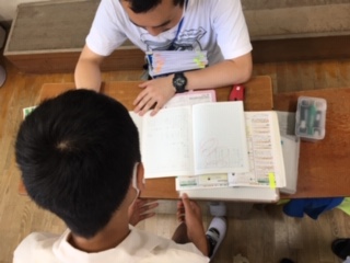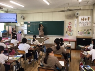 算数の様子です。上の写真は、前で児童が発表しているところです。