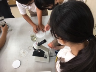 理科「食物連鎖」の学習です。池や川でみられる小さい生物を顕微鏡で観察しました。