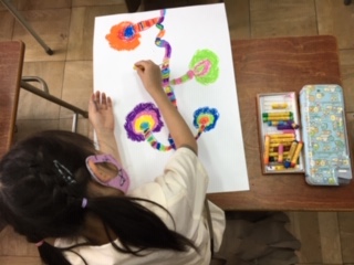 図画工作「宇宙に一つだけの花」に取り組んでいました。