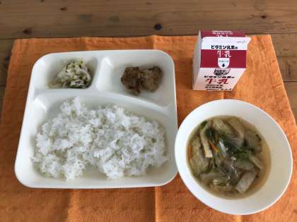 切干しだいこんのゆずの香あえ、ごはん、牛乳