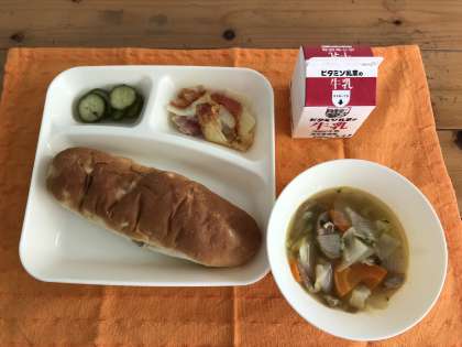 トマトは、今が旬の食べ物です。値段が安く、味がよく、栄養価も高いです。ビタミンCやカロテンが多く、喉、鼻の粘膜や皮膚を丈夫にし、病気にかかりにくくします。食物せんいも豊富で、べんぴを防ぎ、おなかの調子を整えます。じゃがいもとトマトのチーズ焼きは、トマトが苦手でも。ベーコンやチーズと一緒焼くとと食べやすくなる料理です。(栄養教諭)