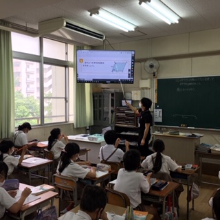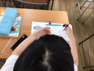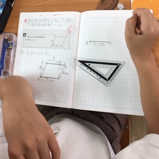 算数の時間です。コンパスを使って平行四辺形をかく練習をおこなっていました。