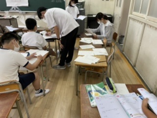 算数科では、習熟度別に分かれて学習しています。今日はまとめの段階で、自分のペースを見極め、どんどん課題を解き進めていました。