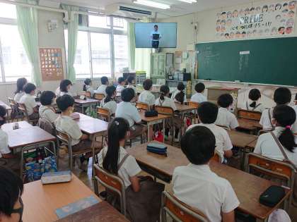 テレビ放送での終業式でした。夏休みは7月21日から8月24日までの35日間です。コロナ感染予防や熱中症対策をしっかり行うなど、健康に気をつけ長い休みを過ごしてほしいです。各教室、児童の聞く姿勢が素晴らしかったです。