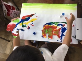「きょうりゅうの形をかんがえてつくろう」に取り組んでいます。素敵な作品ができ上がっていましたよ。