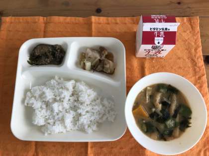 かぼちゃの入ったみそ汁は、あまくておいしかったです。(栄養教諭)