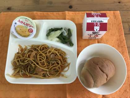 大阪市教育委員会事務局の献立表では、みかんゼリーではなく、なし(二十世紀)がでる予定でした。しかし、このところの天候不順のために、大阪市全体分を調達することができず、提供できませんでした。
