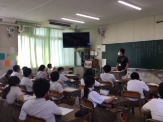 「平和について考える」学習です。ビデオ視聴の後、学習用端末を使って調べ学習をします。