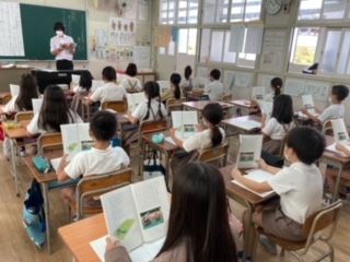 昨日5時間目、3年2組の公開授業があり、たくさんの先生が参観しました。児童は、「文章を読み要約する」学習を行いました。