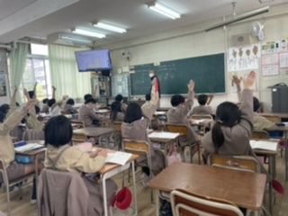 算数科では、既習の公式を使って工夫して面積を求める方法を考えていました。色んな意見が子ども達から出て、活発に意見が交わされていました。